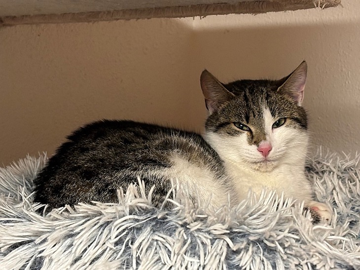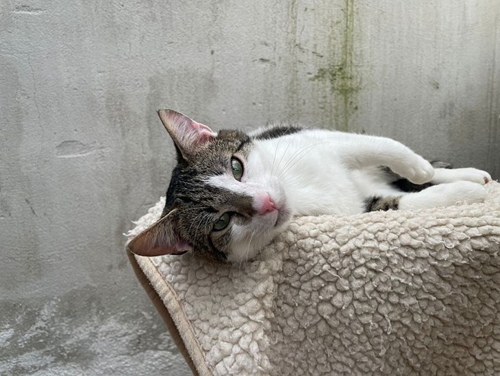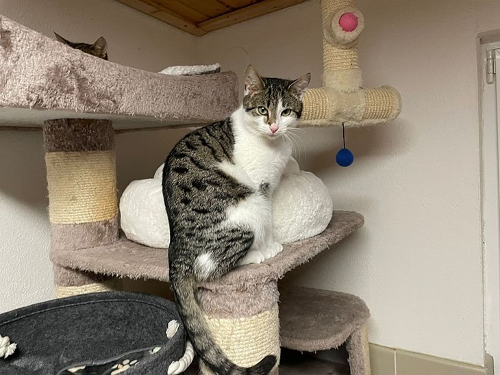 Er verträgt sich gut mit Artgenossen und freut sich bestimmt über ein/e Katzenkumpel/in in seiner neuen Heimat.