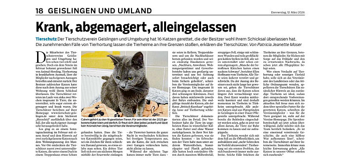 Wir bedanken uns bei der Geislinger Zeitung für die Unterstützung bei unserem Anliegen Leid durch Tierhortungen zu vermeiden und um Unterstützung für unsere Herzeleid Katzen zu bitten.