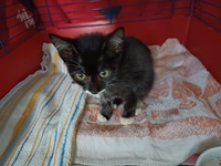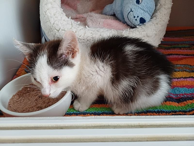 Filou war sehr schwach, völlig ausgehungert und krank.Er hat ganz langsam gefressen.