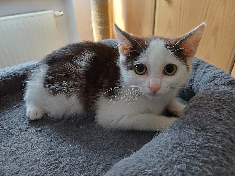 Ansonsten ist er ruhig und schüchtern, lässt sich aber gerne schmusen.