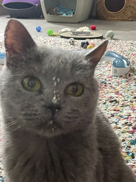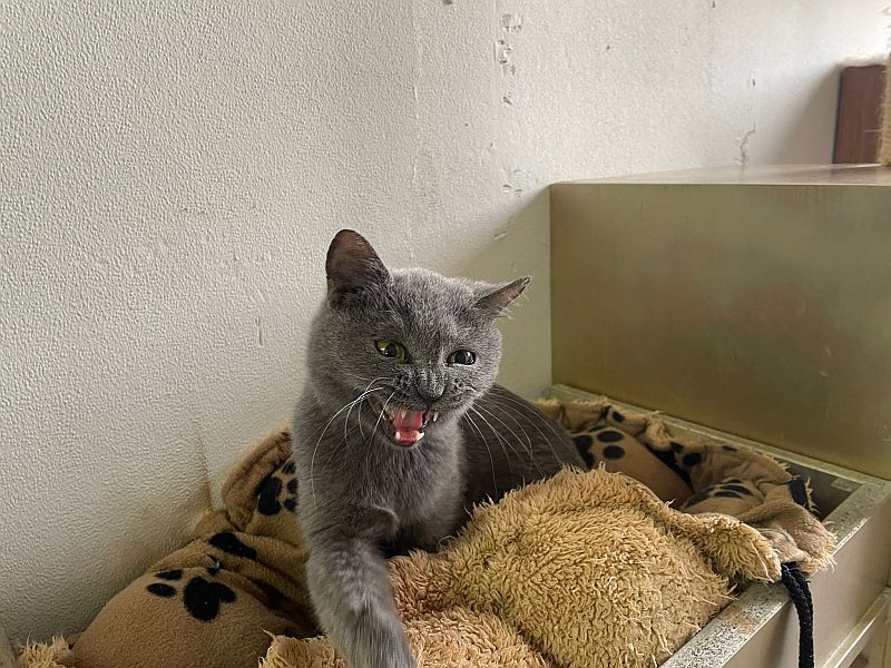 Cäsar der auf eine Heimat ohne andere Katzen hofft und mächtig Ohrfeigen verteilt, wenn er isst oder auf dem Sofa liegt.