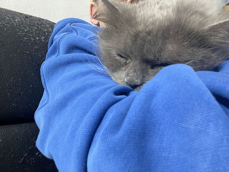 Was alle, außer unser Cody, gemeinsam haben ist das sie zugern in der Armbeuge, auf dem Schoß oder komplett auf einem drauf liegen.