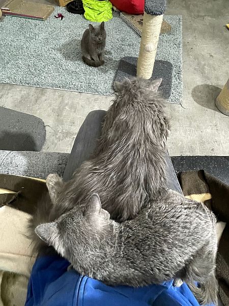 Alle waren ziemlich müde nach dem Eingriff und haben ihr Narkoseschläfchen auf Connys Schoß gehalten und auch etwas Trost gesucht.