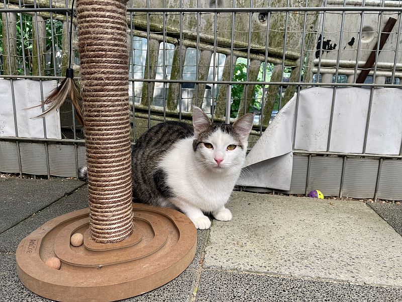 Goofy verträgt sich gut mit Artgenossen, ein/e freundliche/r Katzenkumpel/in würde ihm bestimmt auch dabei helfen Vertrauen aufzubauen und ein toller Gefährte zu sein.