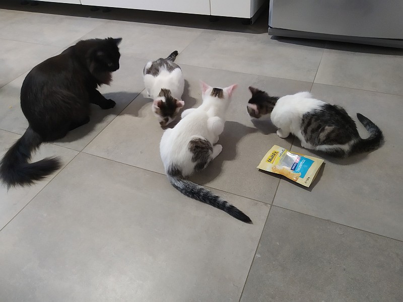 Und beim Leckerli mampfen sind sie alle friedlich ohne Gemecker mit dabei.