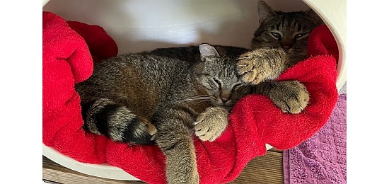 Lasca und Lexa wurden, gerade mal 5 Wochen alt, alleine und fast verhungert in einer Wiese gefunden.