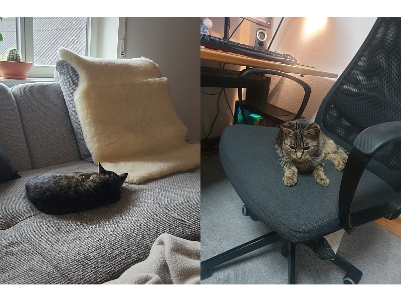 In den ersten Tagen war sie noch sehr skeptisch und vorsichtig unterwegs und hat sich hinter der Couchlehne versteckt.