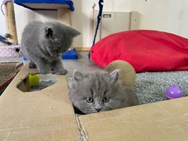 Christies Babys zeigen sich schon und können auch schon aufs Katzenkloo gehen.