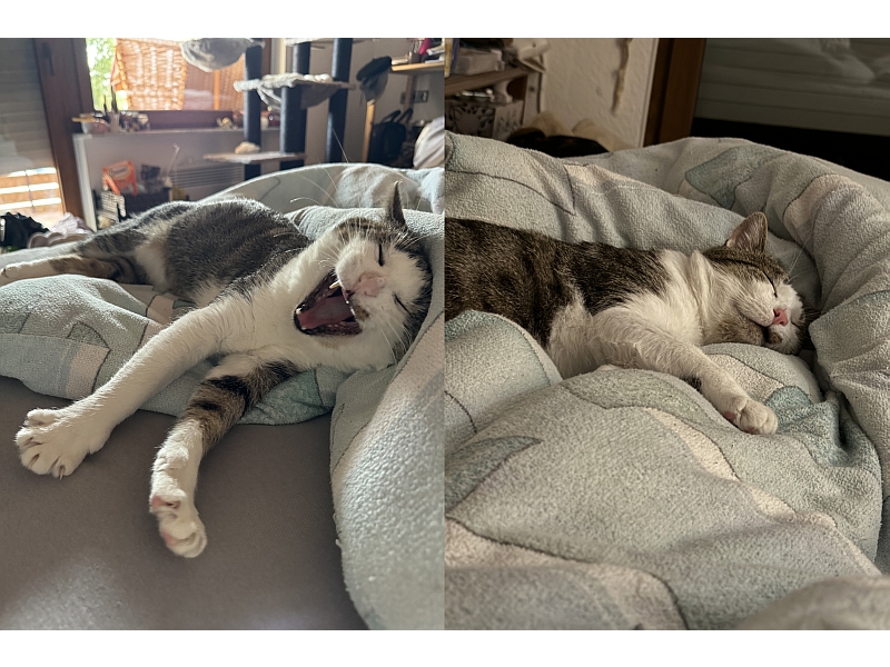 Mittlerweile hat er auch mein Bett als sein Bett eingenommen und kuschelt jede Nacht mit mir.