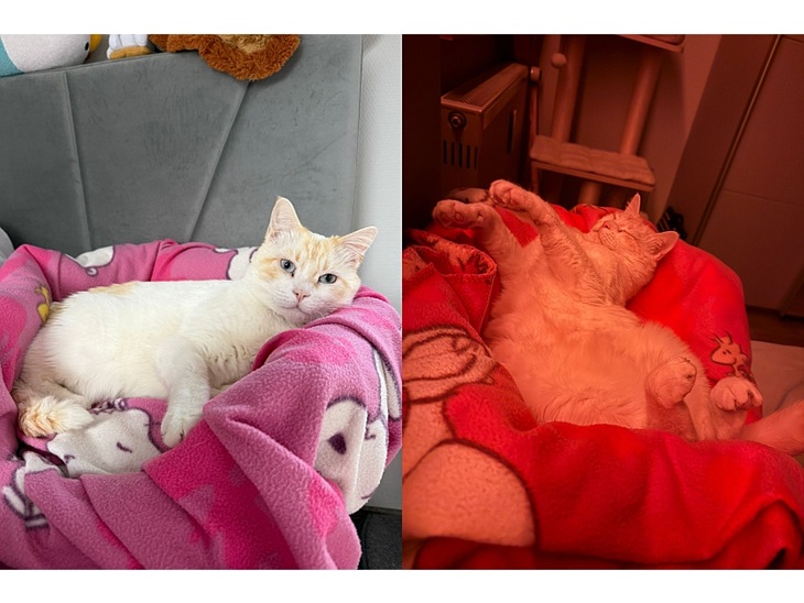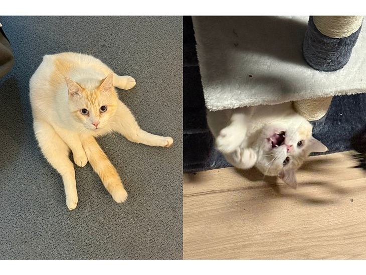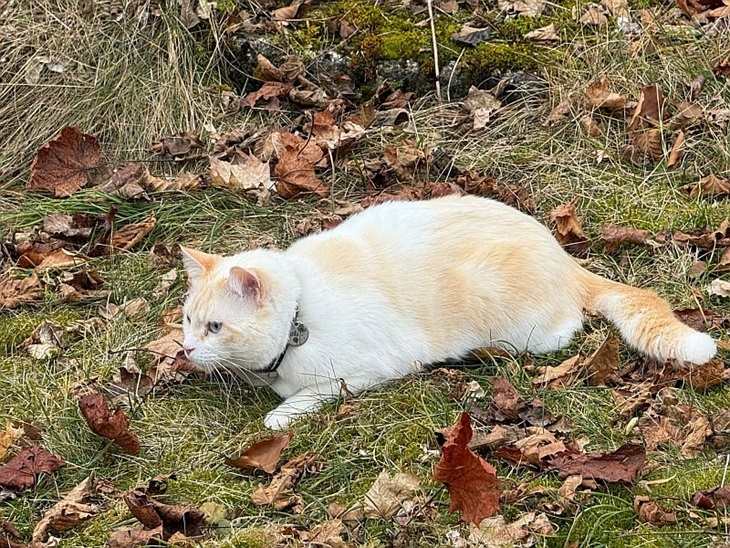 Er hat sich schnell eingewöhnt und war von Tag 1 an mit allen Familienmitgliedern super schmusig, isst immer gut und dreht ausgiebig seine Runden draußen in der Nachbarschaft.