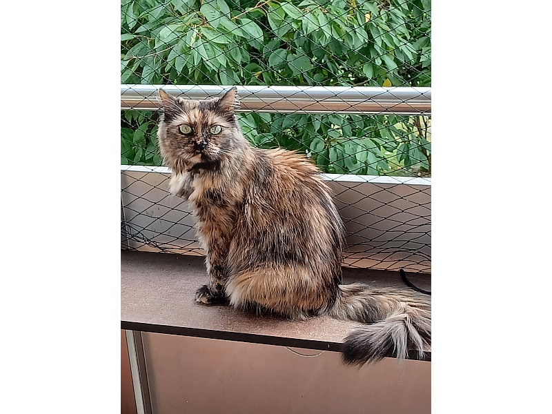 dort haben wir natürlich ein Schutznetz angebracht und ein Brett auf dem sie bequem sitzen oder liegen kann.
