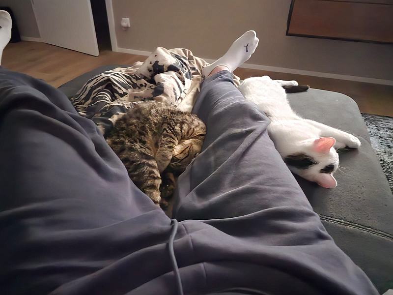 Sie haben viel Spass, bewachen das Treppenhaus und die Computerarbeit.