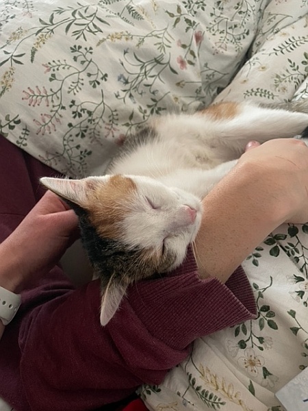 Nachts macht sie es sich im Bett bequem und wir müssen dann halt schauen, ob wir uns noch irgendwie um sie herum hinlegen dürfen.