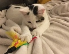 Ich bin nun Football Profi - der Football fliegt durch die Wohnung und ich jage dem Ball hinterher und tackle ihn zu Boden! Das macht super viel Spaß - vor allem weil ich ihn einfach wieder zu meiner menschlichen Wurfmaschine zurückbringen kann und er fliegt im hohen Bogen wieder durch die Lüfte. Auch jage ich hier Federwedeln hinterher, die über den Boden flitzen und ich fange ihn fast jedes Mal. Außerdem muss ich bloß auf meinen Namen hören und ganz schnell herkommen, dann gibt es einen super leckeren fleischigen Snack.