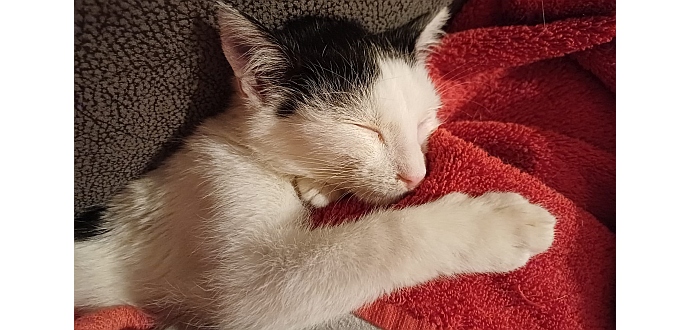 Ein Kitten, schwer krank, fast verhungert und mehr tot als lebendig.