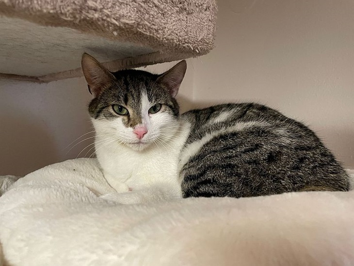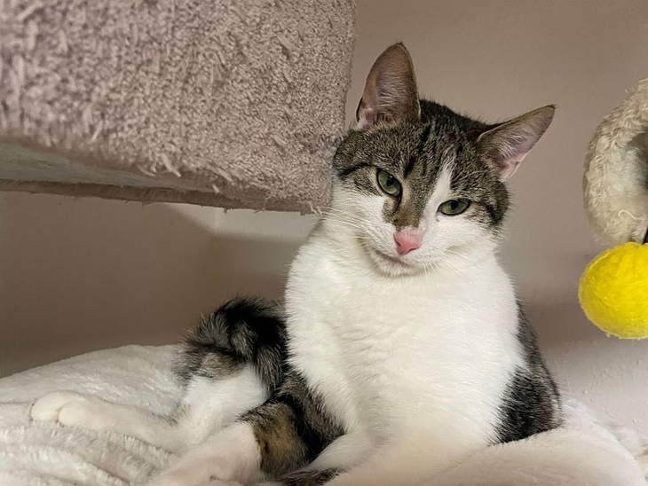 Er verträgt sich gut mit Artgenossen und freut sich bestimmt über ein/e Katzenkumpel/in in seiner neuen Heimat.
