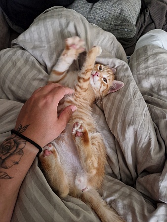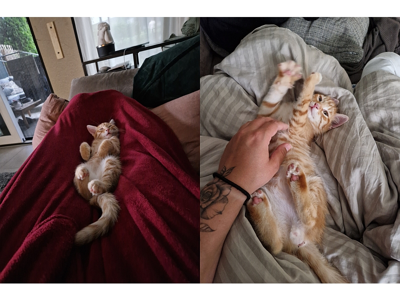 Er hat sich schnell an seine neue Umgebung gewöhnt und hat nach und nach eine gute Beziehung zu unserer bereits vorhandenen Katze Mica aufbauen können.