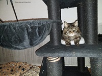 Das war toll, ein eigenes Zimmer mit Kratzbäumen und Kratztonnen.