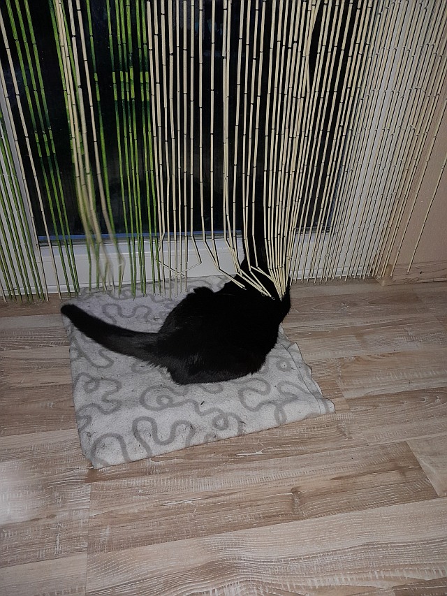 Bevorzugtes Spielzeug nachts um halb 3 war der Bambusvorhang an meiner Terrassentür.