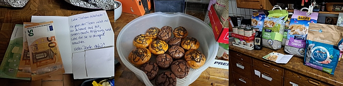 Danke auch für die Katzenstreu Spenden, da brauchen wir gerade sehr viel.