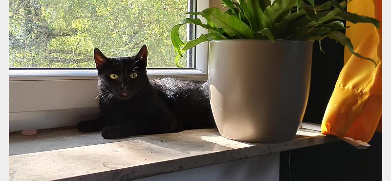 Weiterhin ist sie zurückhaltend, wechselt ihre jeweiligen Verstecke immer wieder, lässt aber Nähe gerne zu schnurrt, reibt ihr Köpfchen und rollt sich auf ihre Seite/Rücken.