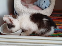 Filou war sehr schwach, völlig ausgehungert und krank.Er hat ganz langsam gefressen.