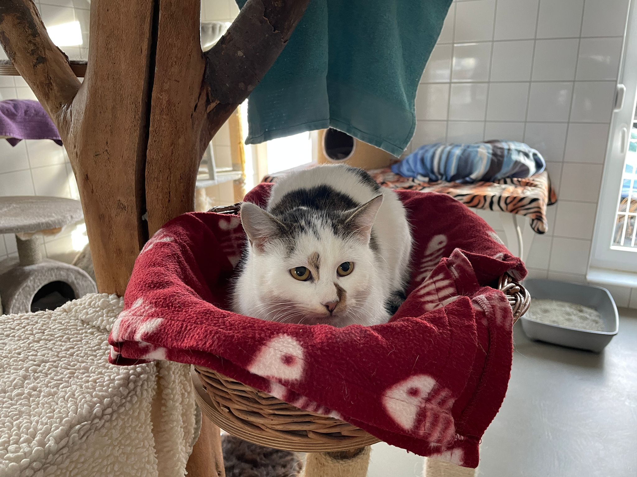 Sie verträgt sich gut mit Artgenossen, ein/e freundliche/r Katzenkumpel/in würde ihr bestimmt auch dabei helfen Vertrauen aufzubauen und eine tolle Gefährtin zu sein.