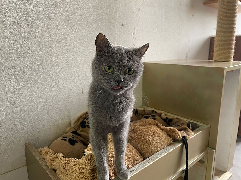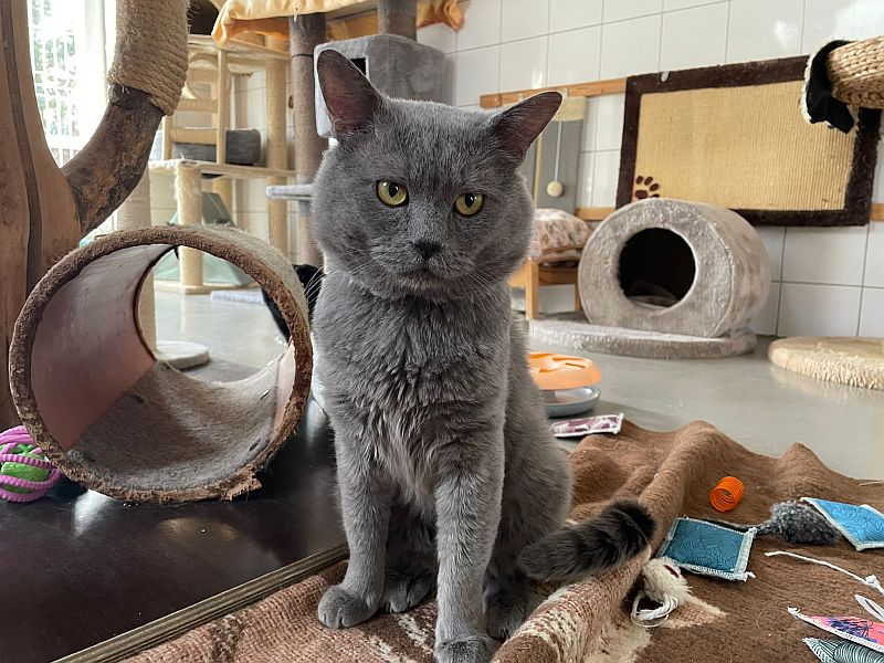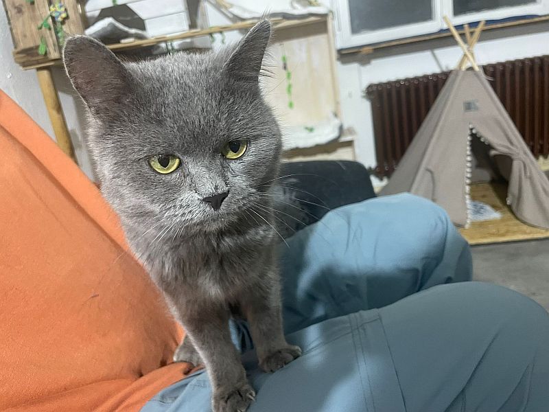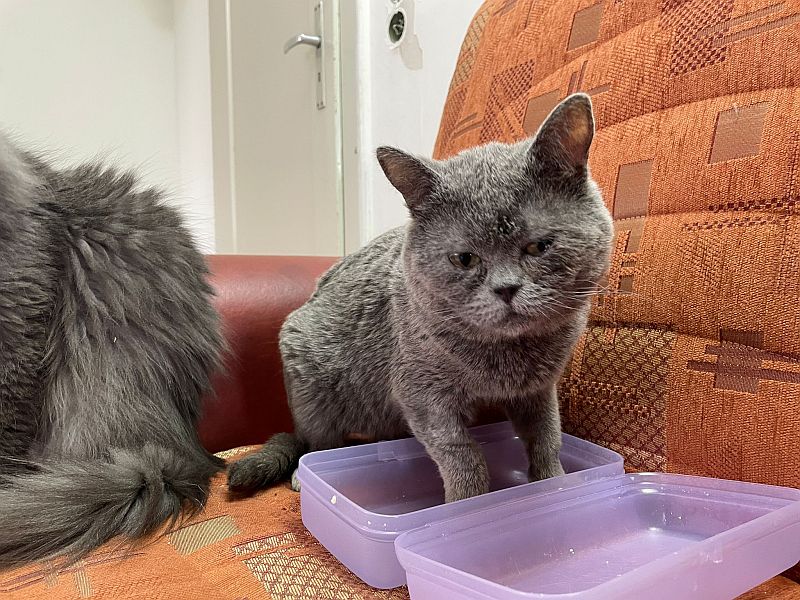 Cäsar der auf eine Heimat ohne andere Katzen hofft und mächtig Ohrfeigen verteilt, wenn er isst oder auf dem Sofa liegt.