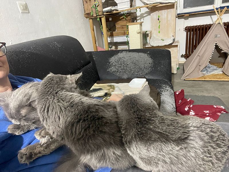 Caruso hat ein Zuhause mit vielen gemütlichen Plätzchen gefunden und der pfiffige Cäsar hat sich seinen Menschen selber rausgesucht, indem er einfach in den Arm gesprungen und dort geblieben ist. Wer soll da noch widerstehen.