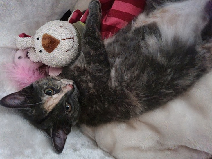 Ich fühle mich sehr wohl hier und ich schmuse sehr viel mit meiner neuen Familie.