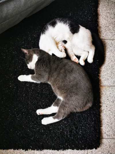 Sie suchen vor allem abends auf dem Sofa immer unsere Nähe und legen sich in der Regel auch sonst meist in dieselben Räume, in denen wir uns auch aufhalten. Dort lieben sie vor allem die Teppiche. Wobei Hänno hier eine Hassliebe entwickelt hat. In dem einen Moment kämpft er mit den Fäden der Teppiche und im anderen rollt er sich genüsslich für ein Mittagesschläfchen dort ein.