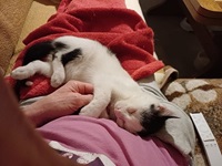 Floyd hat sich prima erholt, er ist lebhaft und schmust zu gerne.