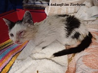 Ein Kitten, schwer krank, fast verhungert und mehr tot als lebendig.