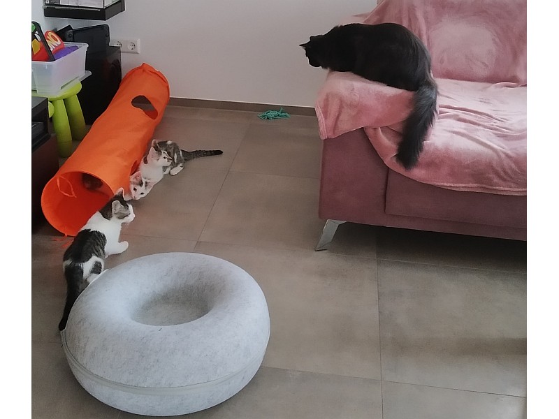 Nayla, die bisherige Alleinherrscherin im Katzen Haushalt, scheint sehr angetan zu sein von der netten Kinderschar.