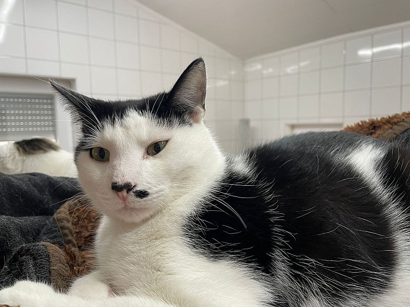 Sie hängt sehr an ihren Katzenfreunden/innen aus dem Tierheim, es wäre schön wenn Kimberly mit einem/einer ihrer Freunde zusammen vermittelt werden kann.