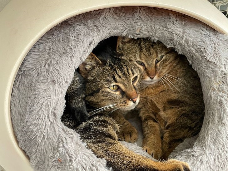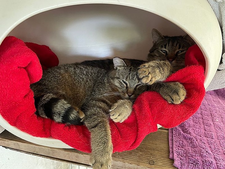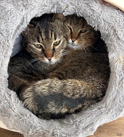 Unsere Lenka hatte plötzlich strahlende Augen und Kater Luis ist sofort zu ihr in die Kuschelhöhle gegangen in der sie jetzt eng beieinander liegen.