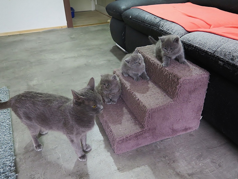Die negativen Dinge sind erst einmal ausgestanden, die Kittenschar entwickelt sich dank der Mama Kommune prächtig.