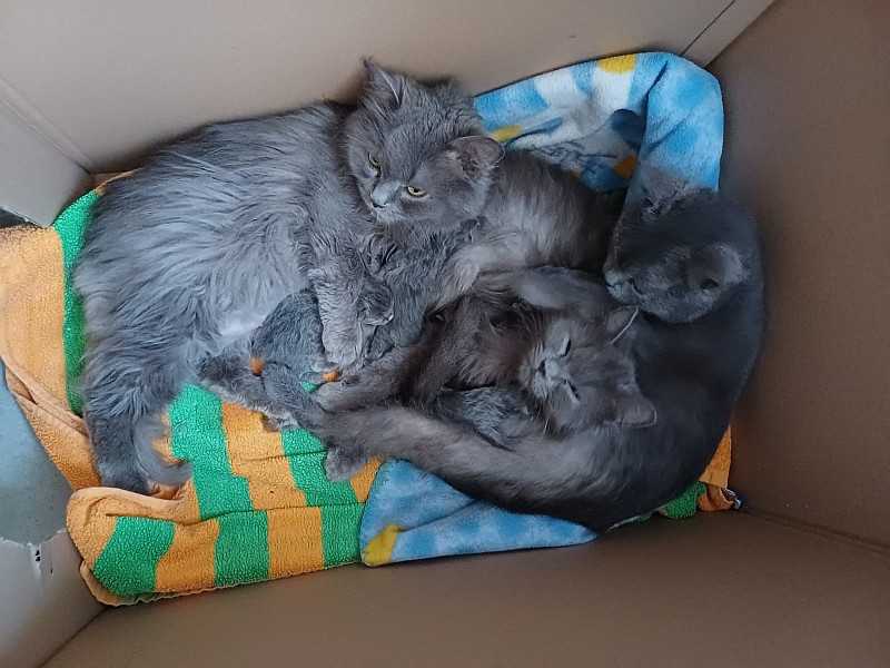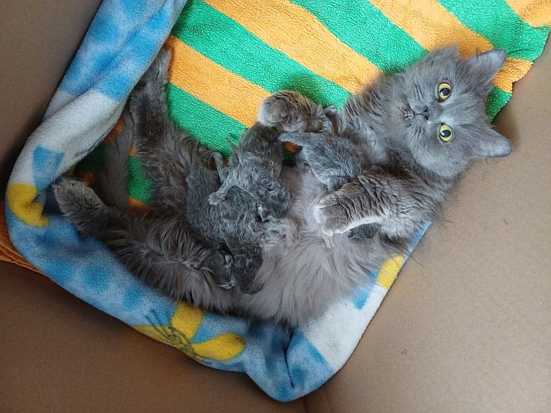 Unsere Mamas haben allerdings eine "Mütterkommune" gebildet, sie liegen alle beieinander, jede versorgt jedes Kitten.