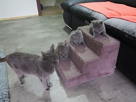 Christies Babys zeigen sich schon und können auch schon aufs Katzenkloo gehen.