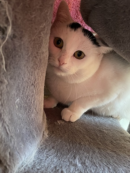 Kontakt und streicheln sind ihr wichtig, und auch die Zusammenführung mit unseren beiden reinen Wohnungskatzen, offen und sehr an der großen Schwester interessiert ist auf einem guten Weg.