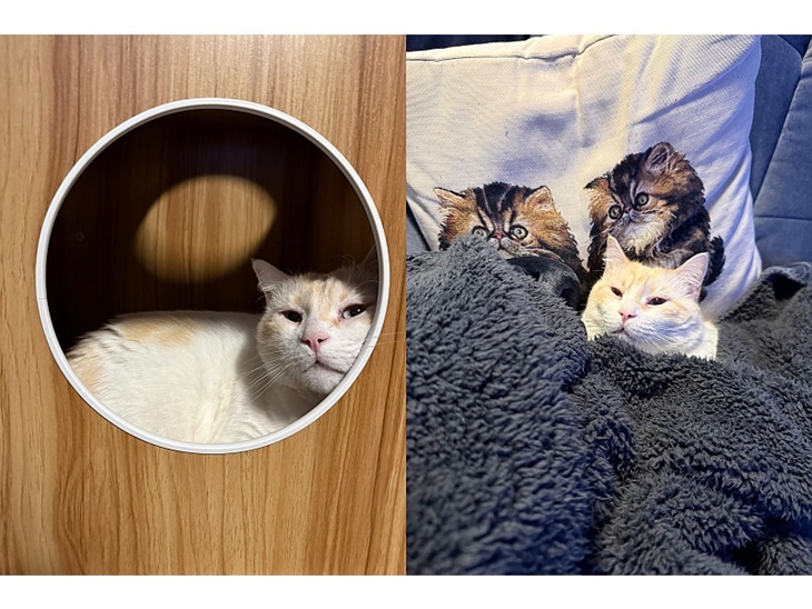 Er hat sich schnell eingewöhnt und war von Tag 1 an mit allen Familienmitgliedern super schmusig, isst immer gut und dreht ausgiebig seine Runden draußen in der Nachbarschaft.