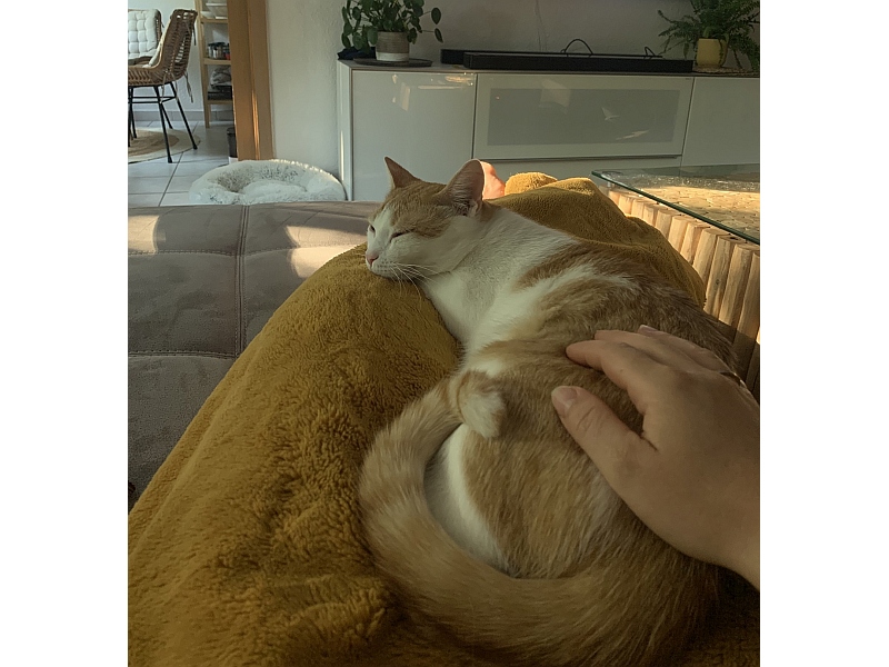 Mein Lieblingsschlafplatz ist im Bett meiner Dosenöffner oder auf der Couch, wo ich abends die Abendsonne genießen kann.