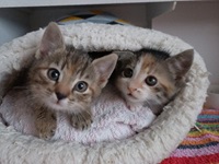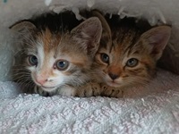 Lexa und Lasca wurden, gerade mal 5 Wochen alt, alleine in einer Wiese gefunden.